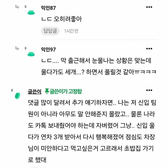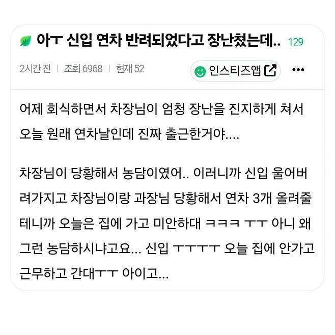 신입 연차 반려되었다고 장난쳤는데..