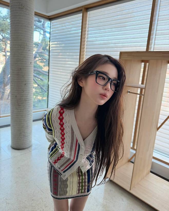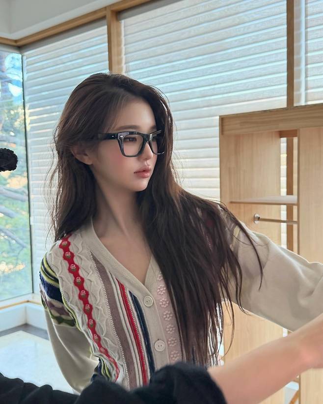 아이보리 바탕에 레드와 블루 포인트가 들어간 니트 소재는 장원영 특유의 맑은 피부톤을 강조하며 전체적인 분위기를 한층 따스하게 만들어주네요.