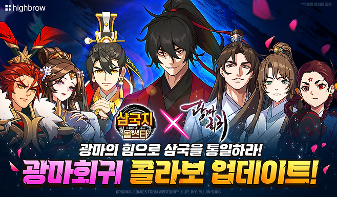 하이브로는 서비스 중인 모바일 게임 '삼국지 올스타'에 네이버웹툰 '광마회귀'와 컬레버레이션을 진행한다고 24일 밝혔다.