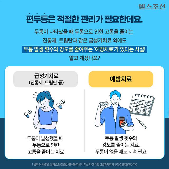 두통 발생 횟수와 강도를 줄여주는 '예방치료'가 있다는 사실!