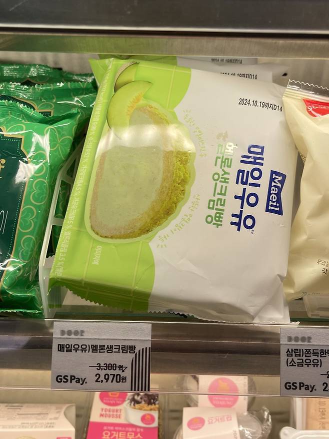 매일유업 멜론생크림빵은 소보로빵 타입의 멜론생크림빵이에요.