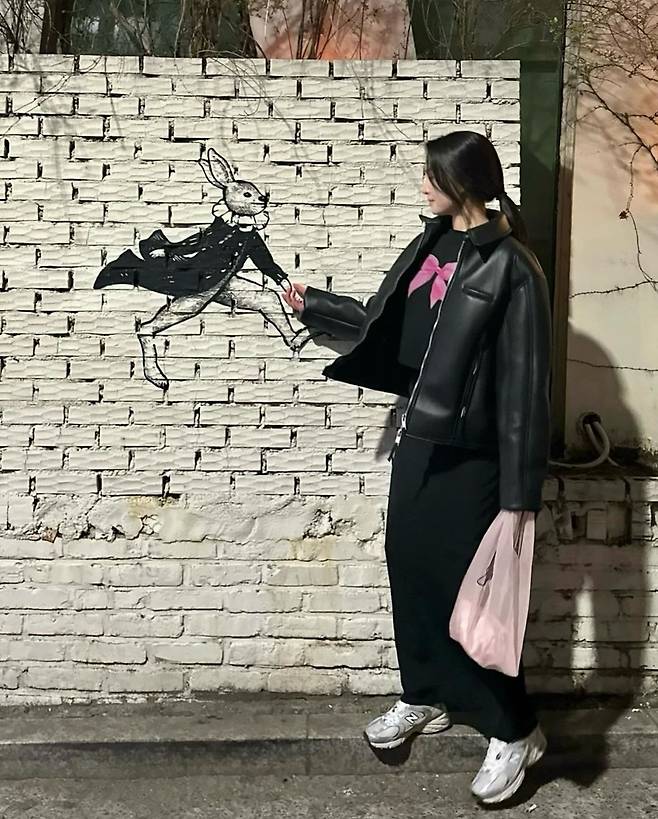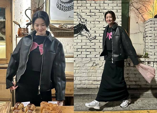 특히 류이서는 검은색 가죽 재킷을 착용해 고급스럽고 세련된 코디를 완성했습니다.