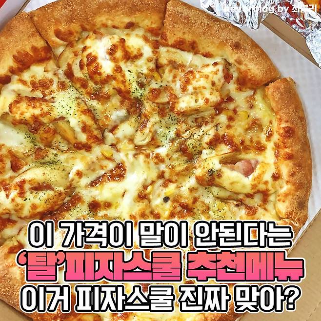 퀘사디아 피자도 1만원대 초반에 먹을 수 있는 거 실화임미까..? 이미 많은 분들의 최애 자리에 올랐다는 전설의 ‘탈’피자스쿨 피자.