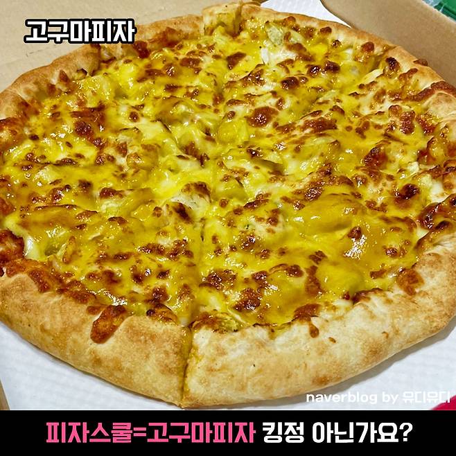 피자스쿨 고구마피자 안 먹어본 국민이 없을 정도로 유명하죠. 달달한 고구마 무스에 고구마가 콕콕 박혀있어서 먹을 때마다 향이 가득하다는..♥ 오늘 저녁은 고구마 피자 각ㅇㅠㅇ
