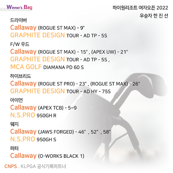 이 외에도 이날 한진선 프로가 사용한 클럽과 우승 데이터가 궁금하다면? 하단의 링크를 클릭!