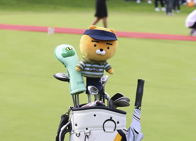 이날 한진선 프로의 캐디백에서 눈에 띄었던 것은 백을 수놓은 귀여운 카카오프렌즈 골프 아이템들이었다. 그 중 제일 먼저 시선을 사로 잡은 것은 큼직한 라이언 디자인의 드라이버 커버.
