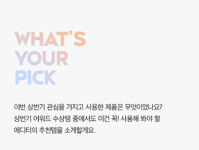 이번 상반기에도 뛰어난 제품력으로 많은 제품들이 글로우픽 어워드에서 인정받았는데요. 2024 상반기 글로우픽 어워드 수상 제품들 중 에디터가 Pick한 베스트 뷰티템을 소개할게요.