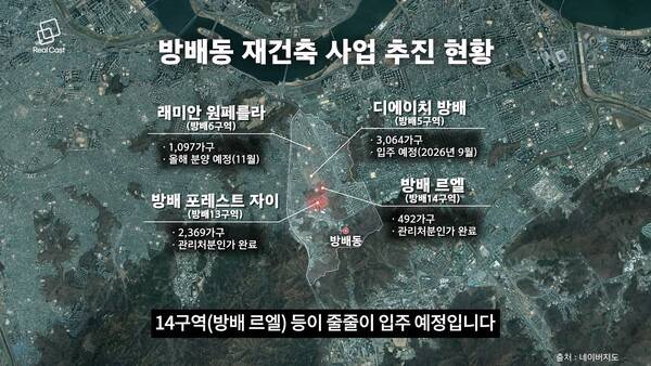 이들 단지가 향후 2년 이내 입주를 하면 이후에는 방배 13구역(방배포레스트자이)과 14구역(방배 르엘) 등이 줄줄이 입주 예정입니다.