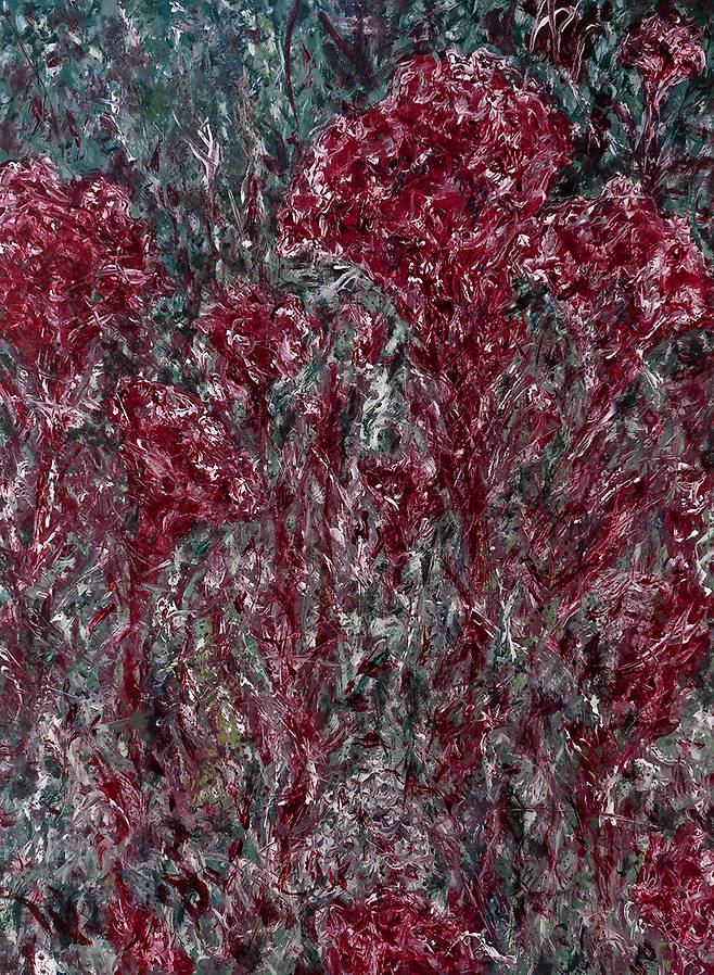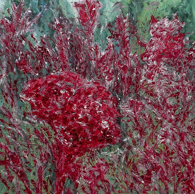 “김지원의 작업은 다면(多面)의 상처를 꿰맨 치유의 얼굴을 하고 있다.” 오랜 기간 관찰과 탐험의 대상이던 맨드라미는 대상재현을 넘어 숨은 본질을 끌어내는 의인화된 매개체로 기능한다. 작가는 맨드라미·레몬과 같이 대상을 색으로 현혹시키는 강렬한 주제를 채집해 ‘자기 파격의 메시지’를 노래해 왔다.