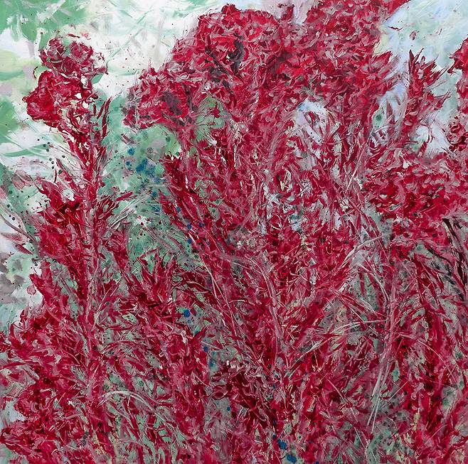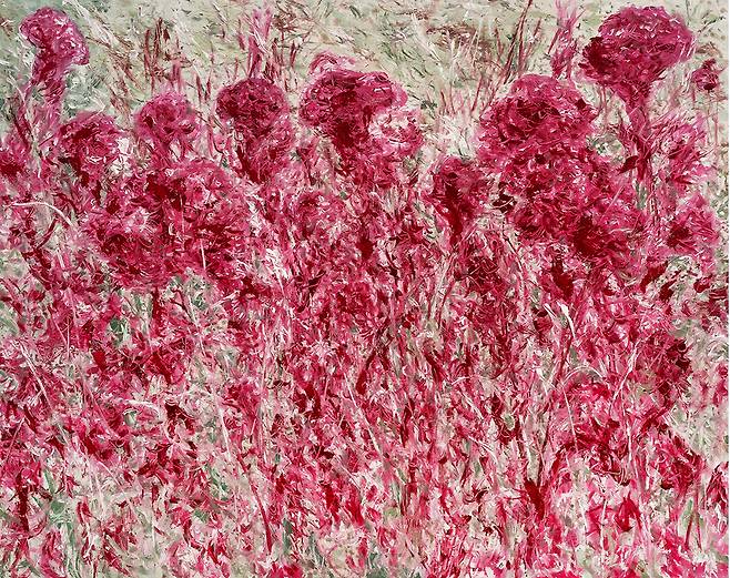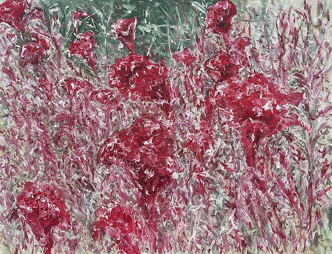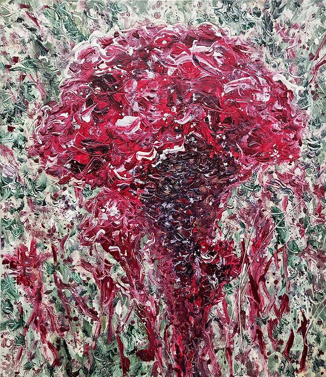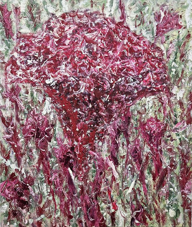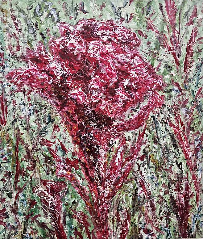 맨드라미는 잡초와 같이 뿌리째 뽑히지만 이내 생명을 틔어내는 강인한 생명력을 가진 존재다. 대담한 터치와 생략, 낭만적이면서도 표현적인 획의 운용은 관습적이기 보다 규범을 깨는 생동감 넘치는 에너지를, 고통 어린 현실을 낭만적으로 돌파하는 강인함을 보여준다.