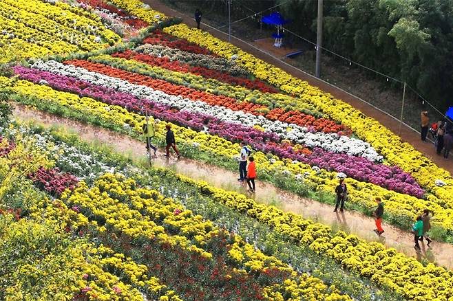 화순읍을 가로지르는 꽃강길은 2km에 달하는 유채꽃 단지로 꾸며져 봄의 절정을 온몸으로 느낄 수 있는 공간으로 탈바꿈한다.