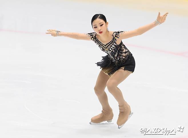 (엑스포츠뉴스 의정부, 고아라 기자) 5일 오후 경기 의정부실내빙상장에서 열린 ‘KB금융 코리아 피겨스케이팅 챔피언십 2025(제79회 전국남녀 피겨스케이팅 종합선수권대회)’ 겸 2025~2026시즌 국가대표 2차 선발전에 출전한 고나연이 연기를 선보이고 있다.