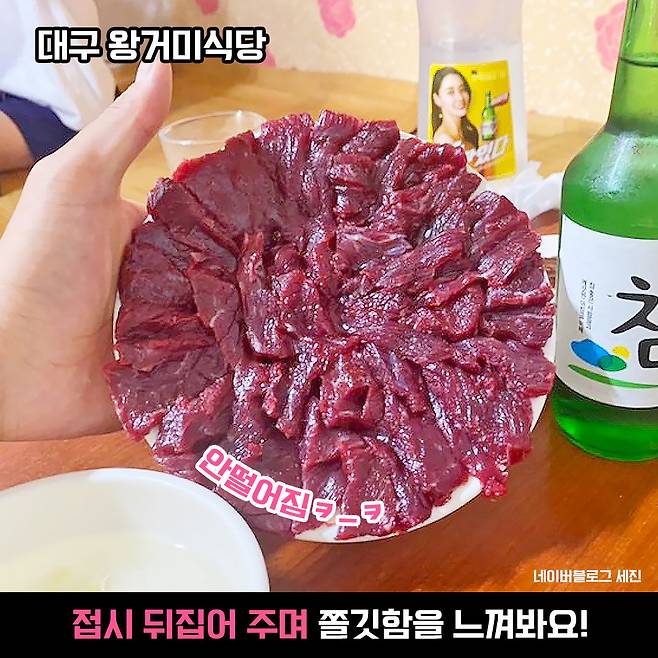 뭉티기의 원조 대구에서 가장 유명한 뭉티기 맛집! 풍자또간집중에서도 1위를 달성할 정도로 쫄깃함이 장난 없다고 해요. 매일 도축한 소만 납품 받기 때문에 신선 쫄깃함이 남다르죠!