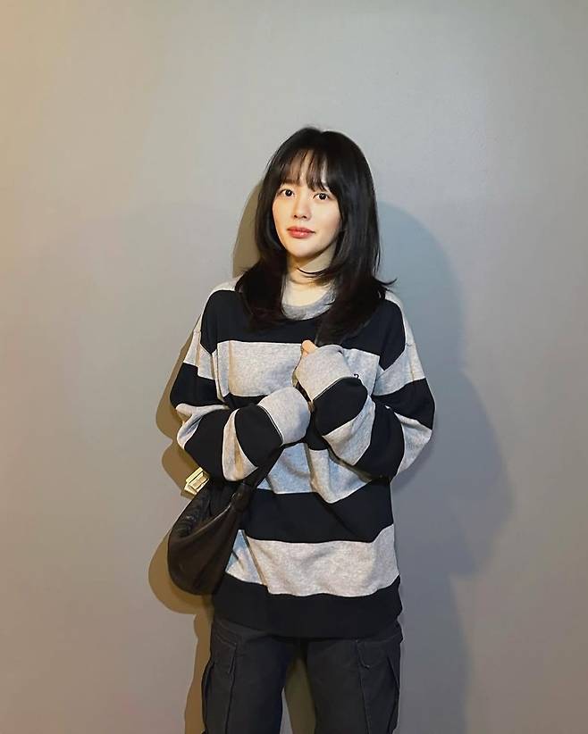 영화 '거룩한 밤: 데몬 헌터스' 무대인사 일정 중 정지소가 공개한 룩이 눈길을 끈다. 깔끔한 회색 배경 앞에서 찍은 이 사진은 심플하지만 스타일리시한 분위기로 팬들의 시선을 사로잡았다. 특히 블랙과 그레이가 교차하는 스트라이프 맨투맨과 자연스러운 블랙 팬츠 매치가 편안하면서도 세련된 무드를 연출했다.