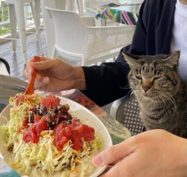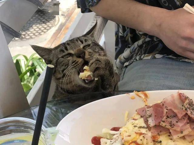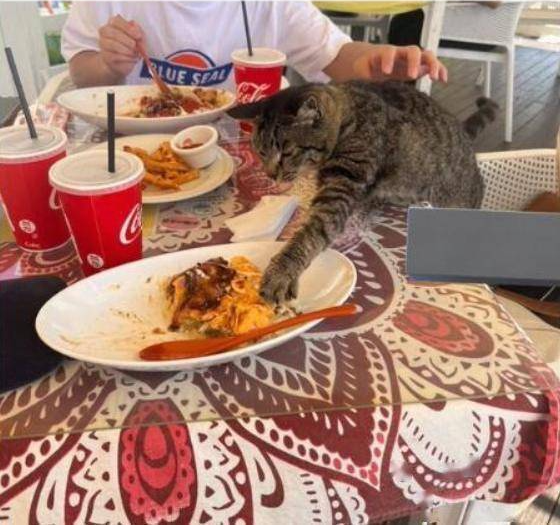 남성이 고양이를 찍으려고 휴대폰을 들어 올리자, '찰칵' 소리와 함께 '범행 현장'을 완벽하게 포착했습니다. 이 고양이는 직접 발을 뻗어 식판을 향해 한 번 휘두른 다음, 맛있게 손으로 집어 먹기 시작했습니다. 마치 "이리 내놔!"라고 말하는 듯했습니다.