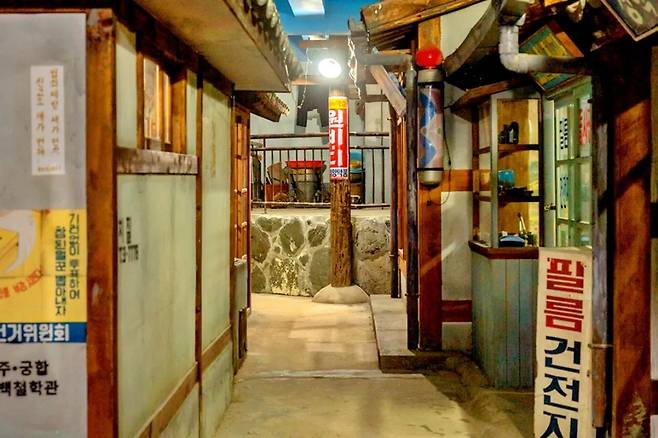 다음으로 이어지는 공간은 ‘추억의 골목길’이다. 빨랫줄에 걸린 수건, 담장 너머 고무공, 간판이 낡은 이발소. 불과 수십 년 전만 해도 흔했던 풍경이지만 이제는 사진 속에서나 보던 장면들이다. 이 골목은 단순히 옛 정취를 느끼는 곳을 넘어 가족 사진 명소로도 인기다. 곳곳에 꾸며진 벽화, 레트로 간판, 주황색 공중전화기 앞에서는 아이와 부모가 함께 사진을 찍으며 자연스럽게 하나가 된다.