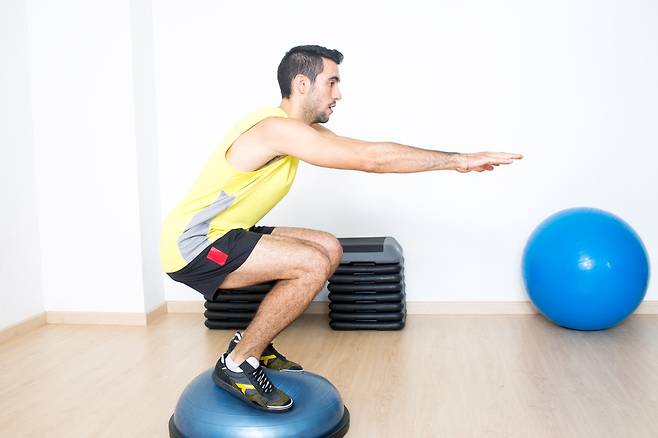 허리를 꼿꼿이 세운 상태에서 허벅지와 지면이 수평이 될 때까지 내려갔다 올라오는 동작은 근육 합성 효율을 다섯 배 이상 높이는 최고의 효과를 내기 때문입니다.
