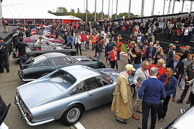 70주년 행사 때 피오라노 서킷에서 페라리 경연 대회인 콩쿠르 델레강스가 펼쳐졌다. 클래식 페라리를 전시하고 누가 더 잘 보존했는지 뽐내는 대회였다. 1950년식 166MM(페라리 첫 차인 125S 후속 모델)이 반짝이는 자태를 뽐냈다. 매번 경매 최고가를 갱신하는 250 시리즈가 열 맞춰 도열했다. 엔초 페라리의 마지막 손길이 닿은 F40은 여전히 강렬했다. 모두 실제 차주가 갈고 닦으며 보존해온 결과물이었다. 피오라노 서킷은 그 순간 페라리를 대하는 사람들의 애정으로 가득했다.