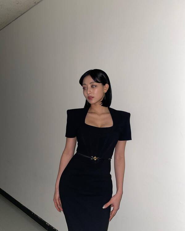 하늘하늘한 쉬폰 소재보다는 빳빳하고 라인이 돋보이는 소재가 더욱 고급스러운 분위기를 만들어준다. 여기에 목 라인을 시원하게 드러내고, 벨트로 허리라인까지 잡아주면 이 체형이 가진 볼륨감이 더욱 강조되어 섹시하면서 시크한 무드가 돋보이는 스타일링이 완성된다.