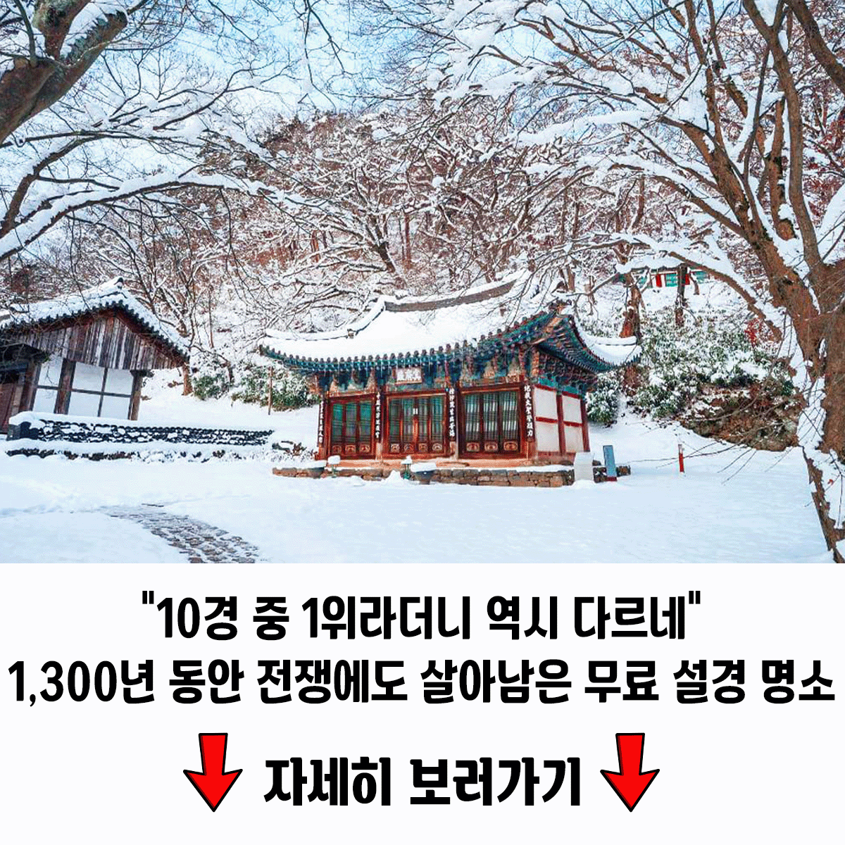 특히 겨울철 하얗게 눈이 내려앉은 풍경은 자연이 그린 수묵화처럼 아름답다. ❄️