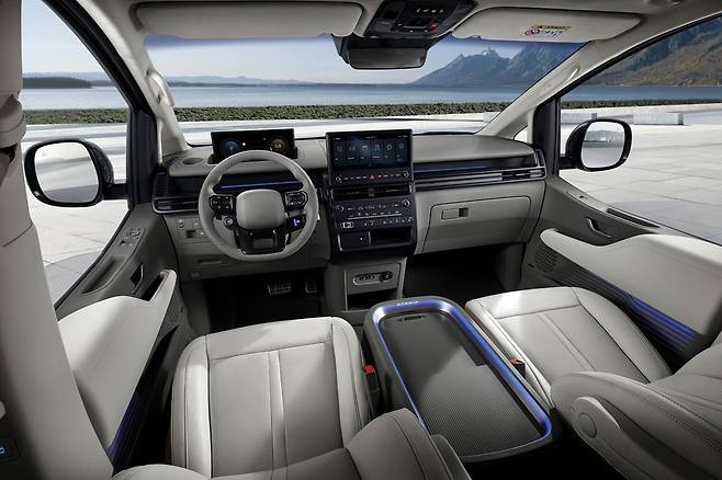 전면부는 기존 3분할 구조의 주간주행등을 하나의 수평 라인으로 연결한 연속형 램프로 변경해 일체감을 높였고, 램프 측면에는 음각 형태의 ‘STARIA’ 로고를 적용해 세심한 인상을 더했다. 블랙 컬러 기반의 수평형 에어 인테이크 그릴 역시 보다 간결하고 미래지향적인 이미지를 완성한다.