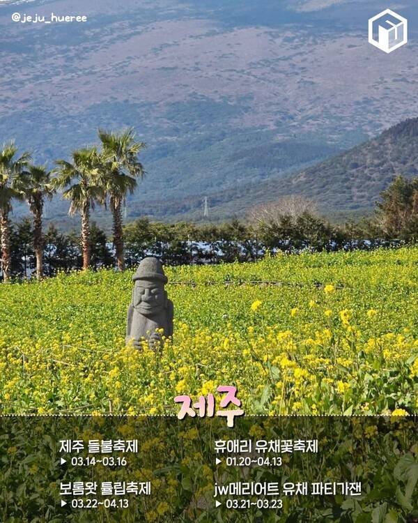 제주도 3월 축제는 유채꽃과 튤립 등 봄꽃 축제와 함께 전통 축제가 예정되어 있습니다.