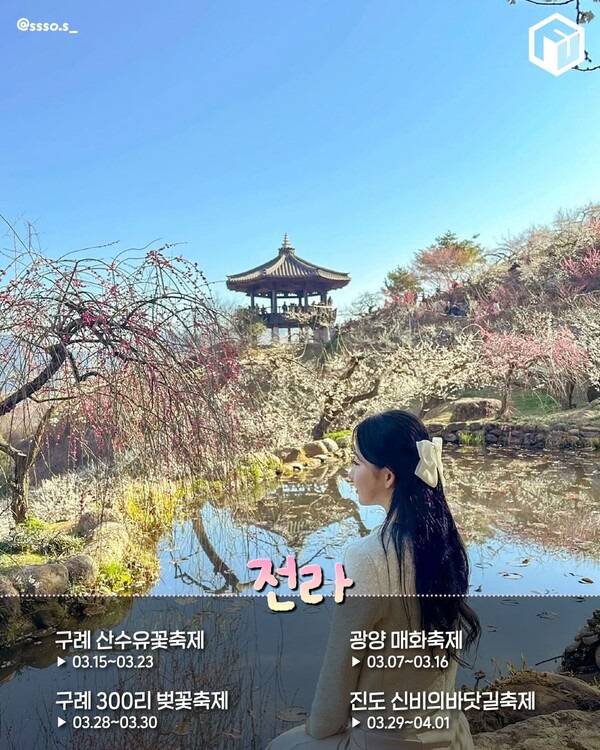전라도는 3월 따뜻한 기온 덕분에 다른 지역보다 일찍 봄꽃이 피어나, 봄꽃이 만발한 풍경을 볼 수 있는 축제가 많습니다.