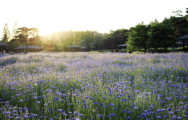 그 중에서도 지금 가장 아름답게 피어난 꽃, 수레국화는 단연 주목할 만한데요. 수레국화는 군락을 이루어 피었을 때 그 진가를 발휘합니다. 푸른빛과 자줏빛이 어우러진 넓은 꽃밭은 마치 유럽 들판을 연상케 하기도 하는데요.