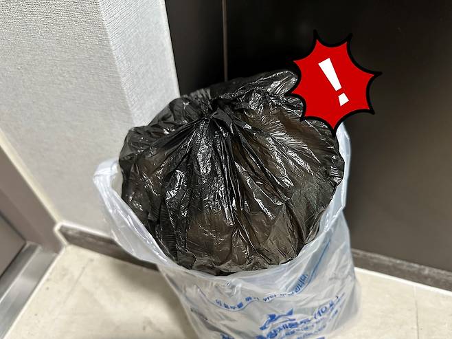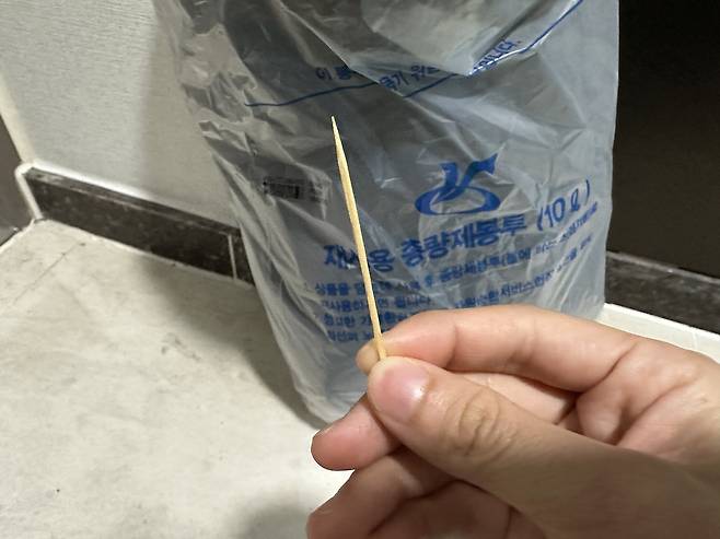 이럴 때 이쑤시개나 뾰족한 것을 준비해서 쓰레기봉투에 구멍을 내주세요.