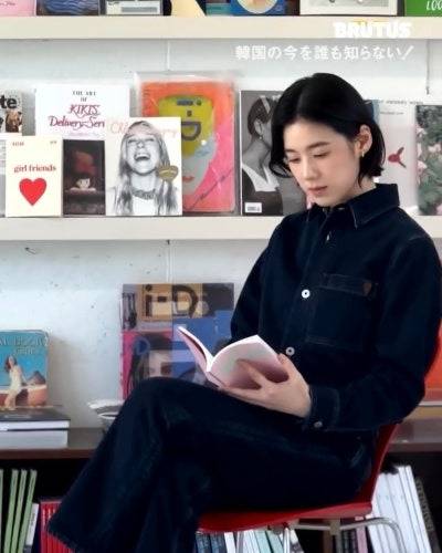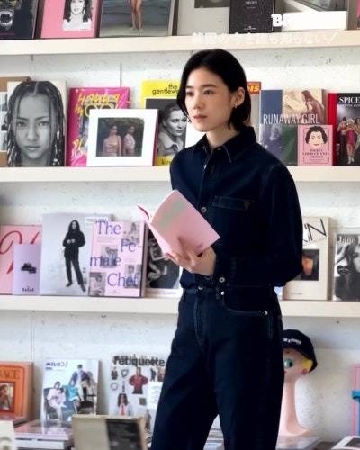 최근 일본 라이프스타일 매거진 BRUTUS와 함께한 콘텐츠에서 서울의 서점 커리큘럼을 소개하는 영상이 공개되었는데, 이곳에서 정은채는 딥블루 컬러의 셔츠와 데님을 매치한 코디로 등장했다.