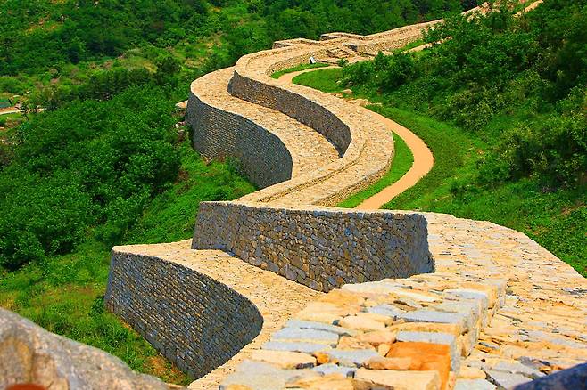 성의 기초 선정 방법을 보자면 삼국시대 산성의 주류 ‘테뫼식’을 따르고 있어 최초의 축성연대를 가야시대로 추정하고 있습니다. 성 내에는 우물지와 가락국 허왕후가 바다에서 온 것을 기리는 해은사가 있습니다.