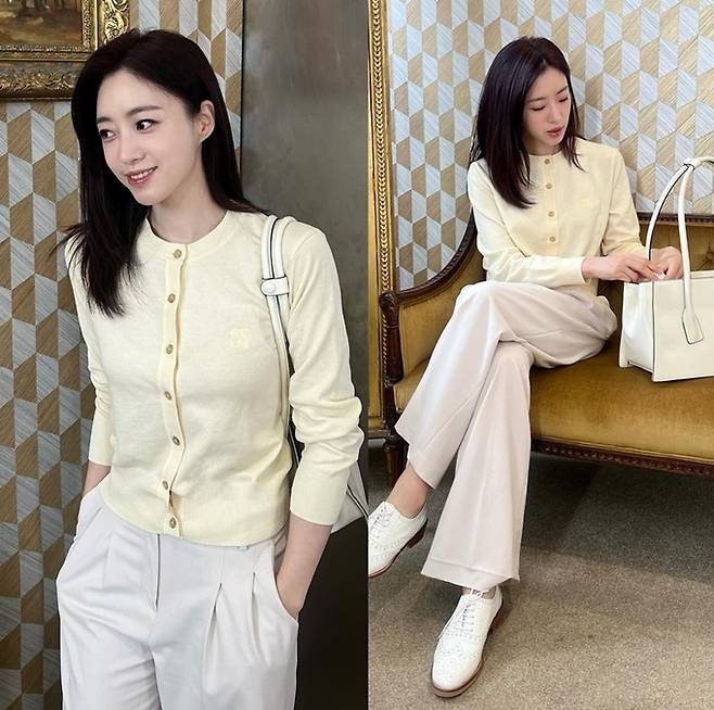 공개한 사진에서 함은정은 노란 니트 카디건에 투턱 팬츠를 매치한 데일리룩으로 봄 분위기를 한껏 만끽했다.