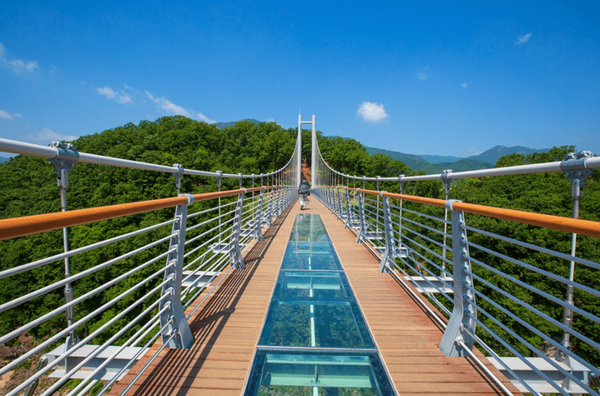2019년 방영된 드라마 '사랑의 불시착'의 촬영지로 활용되었던 포천 한탄강 하늘다리인데요. 이곳은 출렁거리는 다리 아래로 주변의 협곡들을 감상할 수 있어 많은 분들이 방문하는 곳입니다.