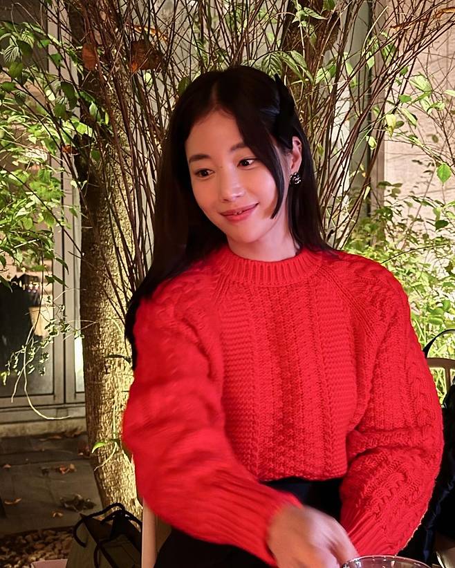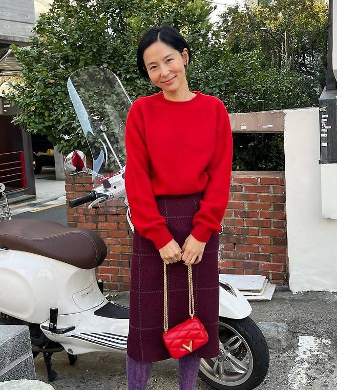 기은세 역시 레드 스웨터로 연말 느낌을 물씬 낸 코디를 보여줬는데요.