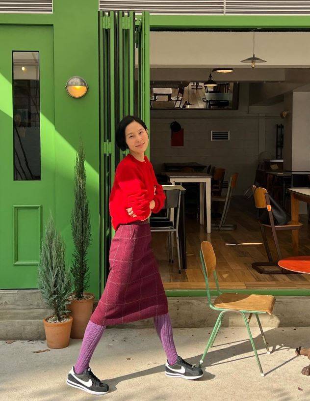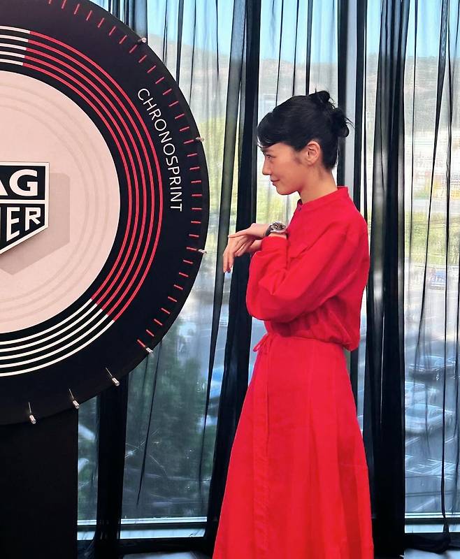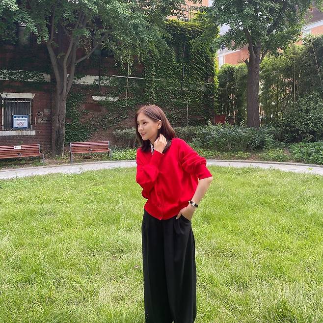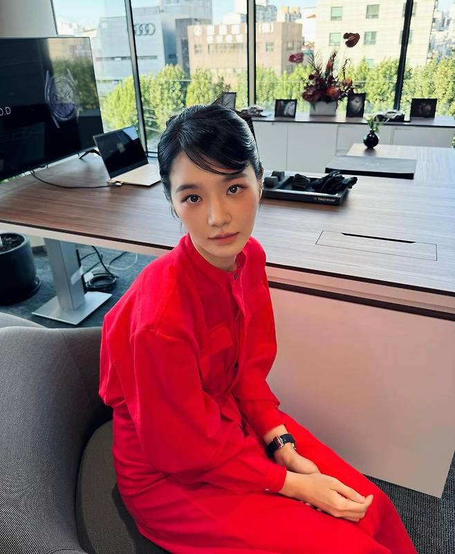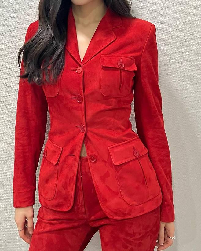 배우 김지은은 레드와 블랙 컬러를 조합한