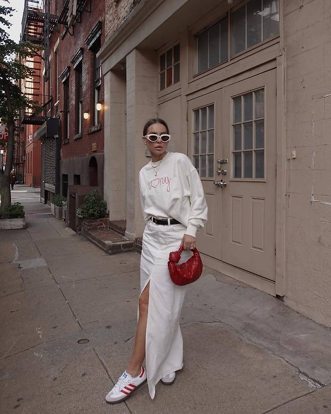 패션 인플루언서 마디나는 올 화이트 룩에