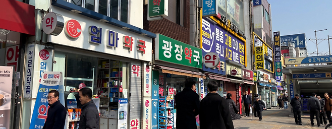A. 종로5가는 대형 약국들이 밀집해 있어 박리다매 형식으로 운영되고 있다. 일반 동네 약국보다 적게는 수만 원에서 많게는 수십만 원까지 저렴하게 판매하다 보니 전국에서 수요가 몰리고 있으며 이로 인해 특정 지역의 품귀 현상이 더욱 심화되는 경향이 있다.