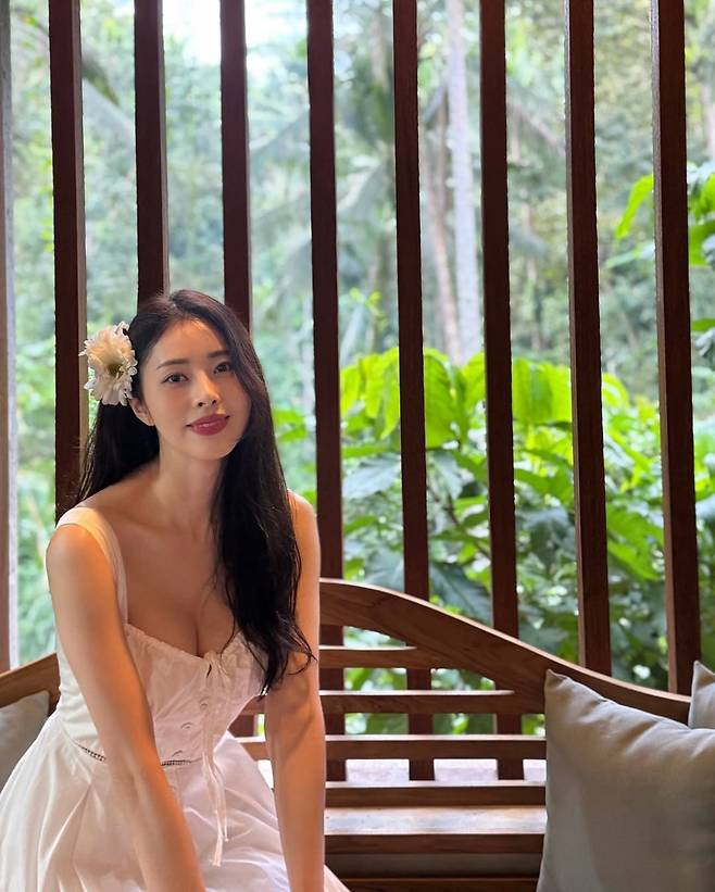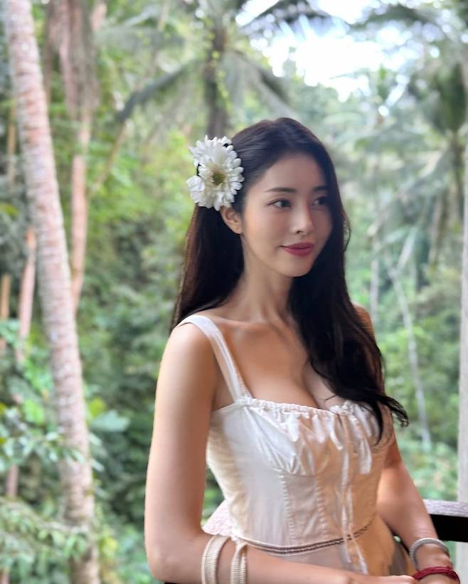 사진 속 서동주는 싱그러운 열대 정글을 배경 삼아 화이트 롱 드레스에 꽃을 머리에 꽂은 청초한 모습으로, 자연과 완벽하게 어우러진 여신 비주얼을 자랑했다.