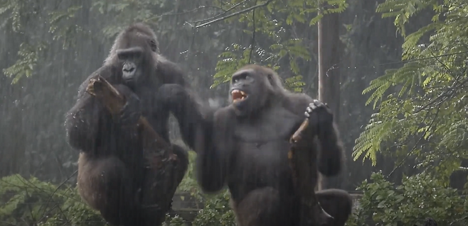 제리씨와 로랐씨는 “아지볼로도 장난기 많은 고릴라입니다.”라고 말했습니다. “구조된 고릴라 중 막내로서 오랫동안 무리의 막내로 지내왔습니다. 물론 노는걸 좋아하는 아지볼로이지만 점보처럼 시도때도 없이 장난을 걸면 짜증을 팍! 내곤 합니다! 그 모습에 더 장난을 거는 것 같지만요! 그리고 아지볼로는 비를 맞으며 빗속에서 있는 것을 좋아합니다.”