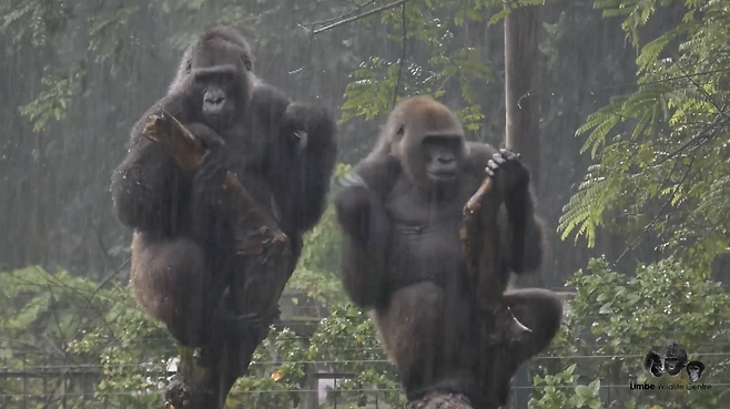 림베 야생동물 보호센터에서는 녀석들에 대한 게시물에서 “점보는 비가 내리는 와중에도 아지볼로를 귀찮게해서 결국 화를 낼 때까지 계속해서 장난을 칩니다.”라고 썼습니다.