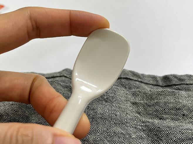 그냥 일반 스푼 같아 보이지만 이 제품의 가장 큰 장점은 실리콘 소재로 되어서 유연하고, 잼이나 소스류 등을 긁어모을 때 깔끔하게 긁어모을 수 있다는 것입니다.