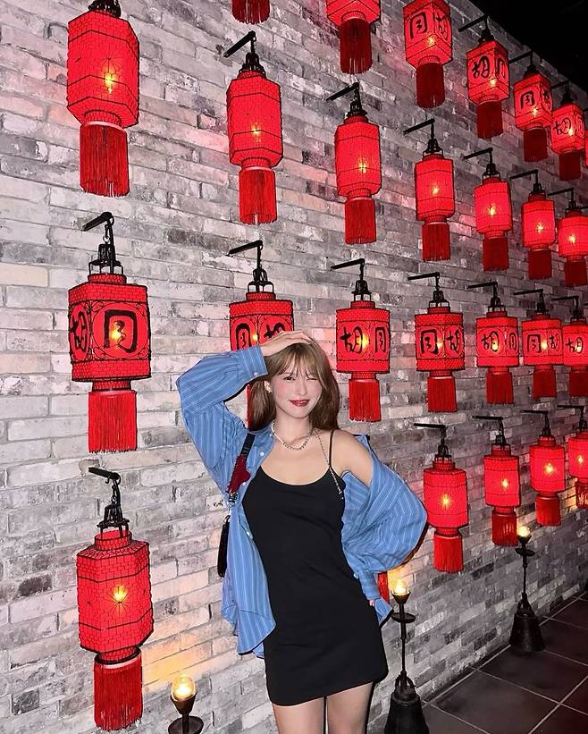 화려한 붉은 랜턴들이 늘어선 이국적인 벽 앞, 이아인이 시크하면서도 감각적인 나이트룩으로 눈길을 끌었다. 블랙 슬립드레스에 루즈핏 스트라이프 셔츠를 무심하게 걸쳐 입은 그녀의 룩은 세련된 도심 속 야경을 완벽하게 배경 삼아 빛을 발했다. ‘인생 최고의 식사였다’는 멘트처럼, 패션 또한 기억에 남는 순간으로 남기기에 충분했다.