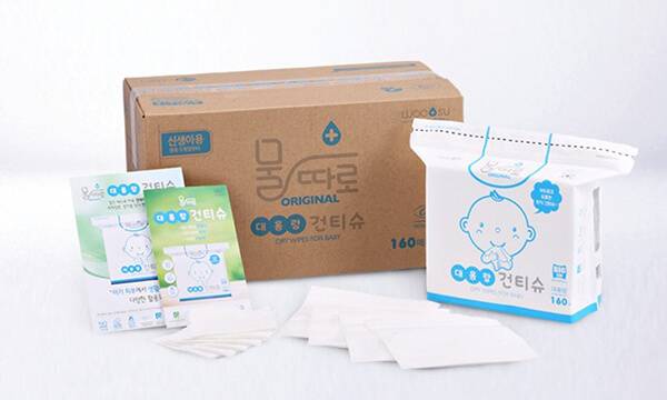 ‘물따로 건티슈’는 환경부 표준 생분해도 테스트 인증 원단으로 제작돼, 배출 시에 플라스틱에 의한 환경오염을 걱정하지 않아도 되는 제품이다. 신선도와 위생을 위해 국내 생산 원단으로만 생산되는 건티슈로, 제품이 소분용 지퍼백과 함께 제공되는 점이 특징이다. 필요한 양만큼 덜어 물을 적시면 화학 성분 걱정 없는 즉석 물티슈를 만들어낼 수 있다. 원단 크기에 따라 골라서 사용할 수 있도록 L과 M의 두 가지 사이즈로 공급되는 제품이다. L 사이즈 160매 4팩의 판매가는 22,800원이다.