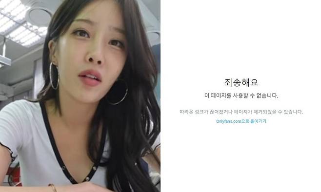 3일 한선월의 성인용 플랫폼 '온리팬스'(OnlyFans)에 접속하면 "죄송해요. 페이지를 사용할 수 없습니다"라는 안내문구가 뜬다.