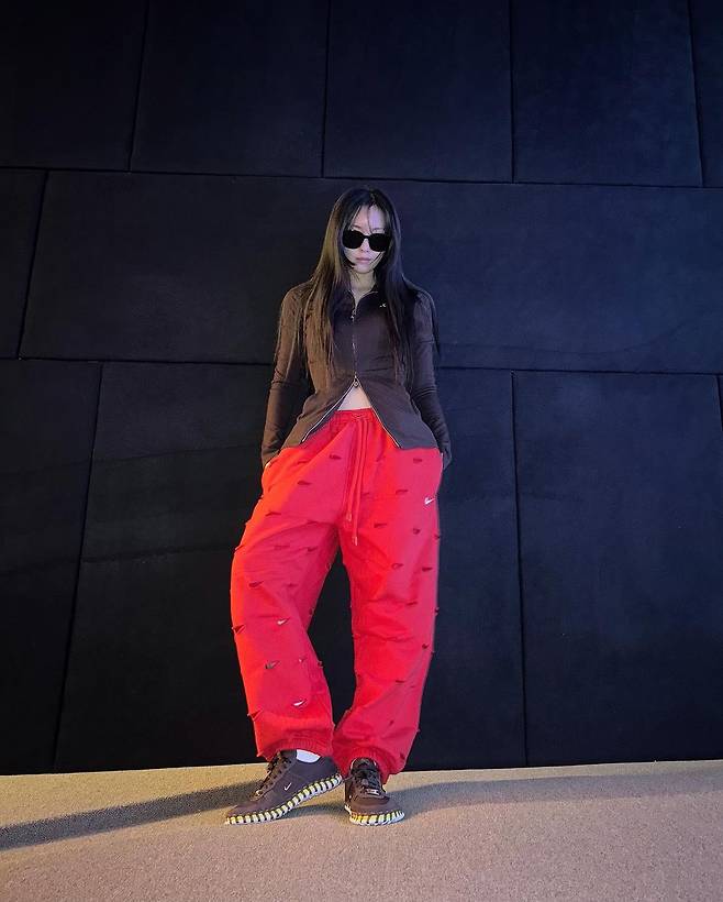 사진 속 효민은 블랙 탑을 입고 빨간 바지를 입고 날씬한 복근을 자랑했다. 또 다른 사진에서는 바지와 셋업인 티를 입고 남다른 패션감각을 선보였다.