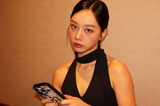 골드 체인 목걸이와 웨이브 헤어는 힙하고 개성 넘치는 분위기를 더하며, 걸크러시한 카리스마가 돋보인다.