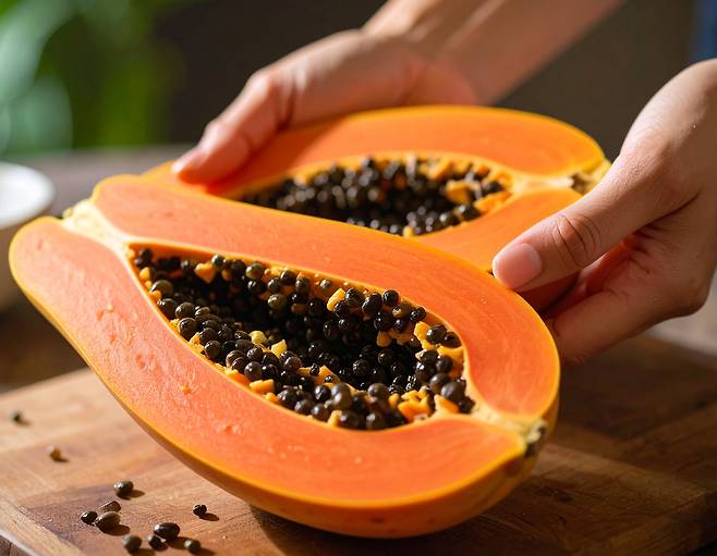 파파야는 그 이름만으로는 조금 낯설 수도 있지만, 효능만 보면 충분히 꾸준히 먹을 가치가 있어요. 비타민 A, C, B군, E까지 거의 종합 선물세트처럼 들어 있고, 소화를 도와주는 파파인 효소도 포함돼 있어요. 입맛 돋우는 달콤함에 면역력 강화, 세포 보호, 항산화 효과까지 덤으로 따라옵니다. 과일로 그냥 먹어도 좋고, 요거트나 샐러드에 곁들이면 근사한 한 끼가 돼요.