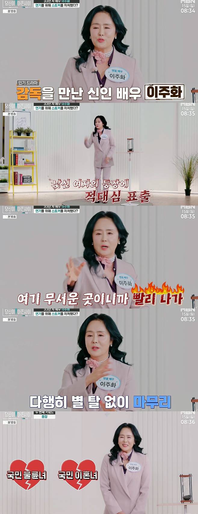 15일 방송된 MBN '당신이 아픈 사이'에서 이주화는 스스로 스토커를 자처한 적이 있었다고 털어놨다.