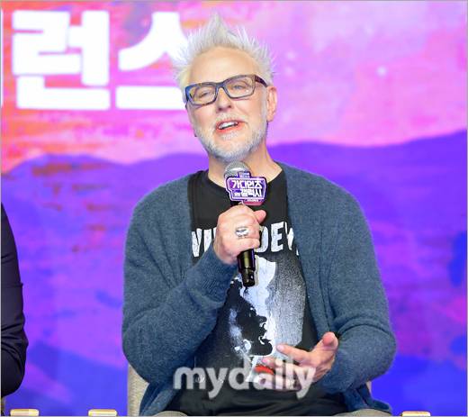 각본과 연출을 겸한 제임스 건 감독은 "정말 흥분된다. 한국에 처음 왔다. 제일 좋아하는 영화가 한국 영화다. 영화의 고장에 와 기쁘다. 월드투어 행선지로 한국에 도착해 의미 있다. '가디언즈 오브 갤럭시' 시리즈의 마지막이라 많이 울고 웃었다"라고 첫 내한 소감을 남겼다.