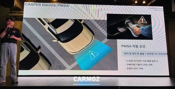 이 날 가장 많은 질문이 나온 기능은 단연 오조작 안전보조 기능, PMSA다. 국내에서는 최초로 적용된 기능으로, 상위 모델이 아닌 경차 기반의 파생형 전기차에 적용됐다는 점에서 관심이 집중됐다.